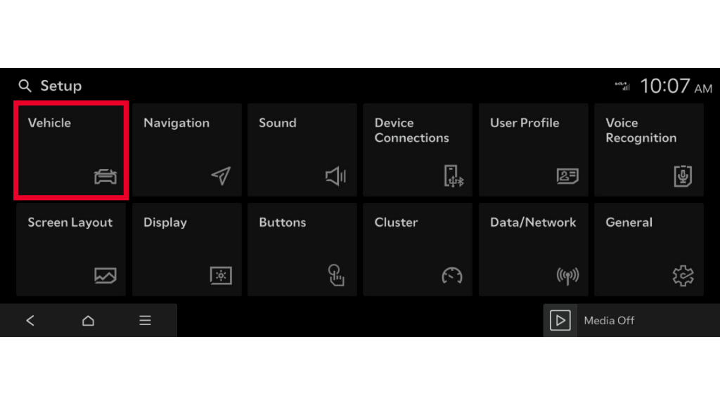 • From the Setup menu, select Vehicle.