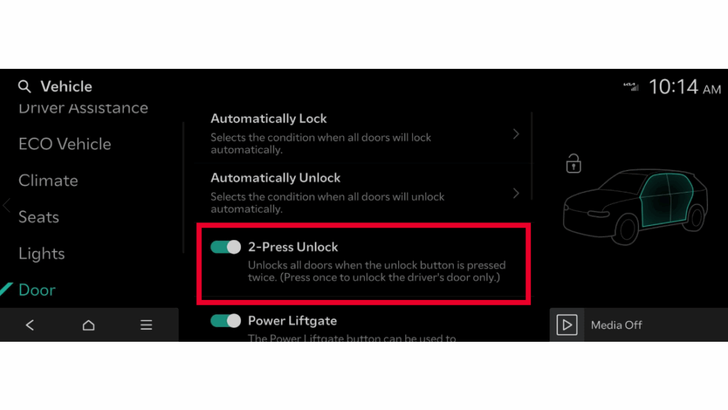• Tap 2-Press Unlock to turn the feature on or off.